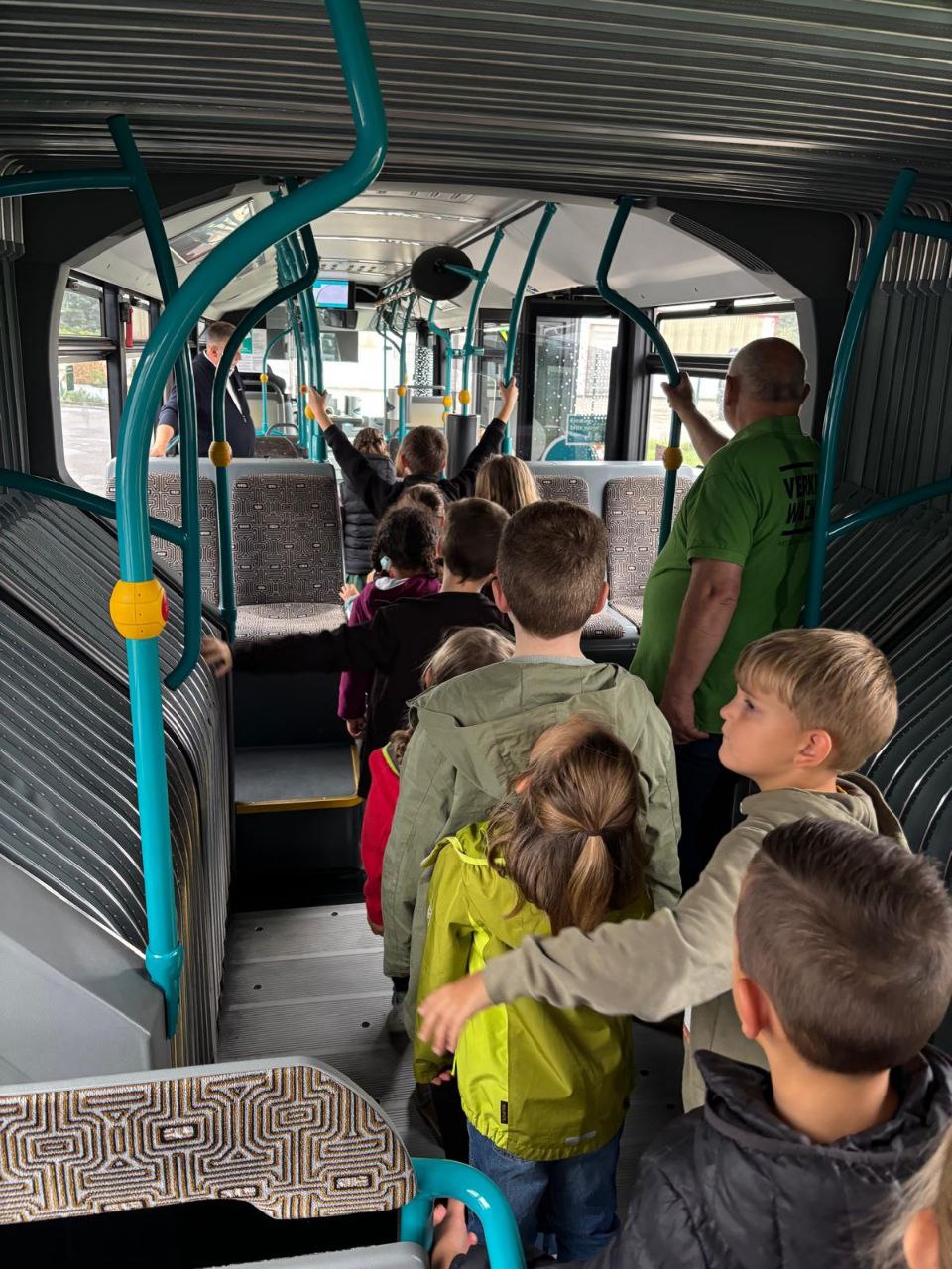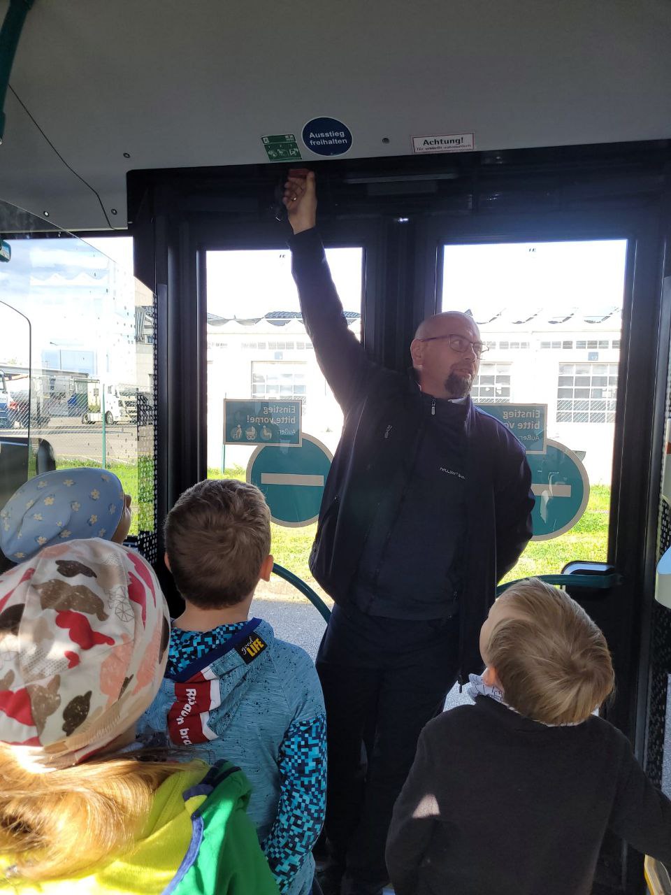 Ein besonderes Highlight war die Notbremsung: Der Busfahrer zeigte uns was passiert, wenn der Bus plötzlich stark bremsen muss. Das war sehr spannend und lehrreich. Wir fühlen uns fürs Busfahren gut vorbereitet.