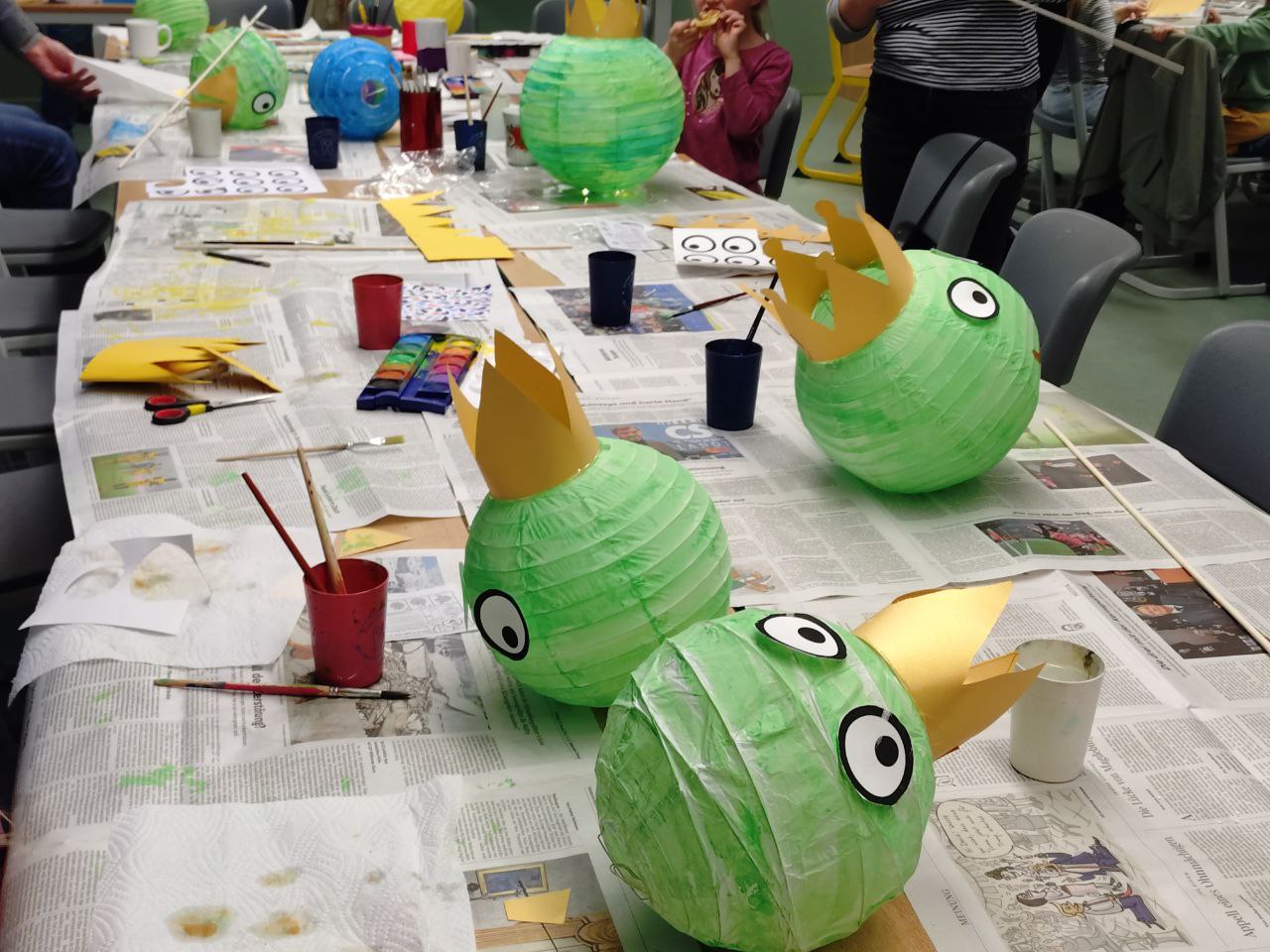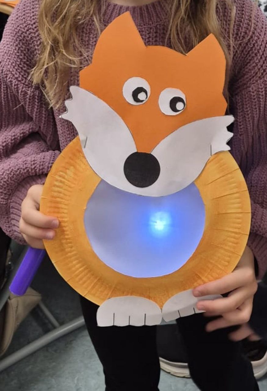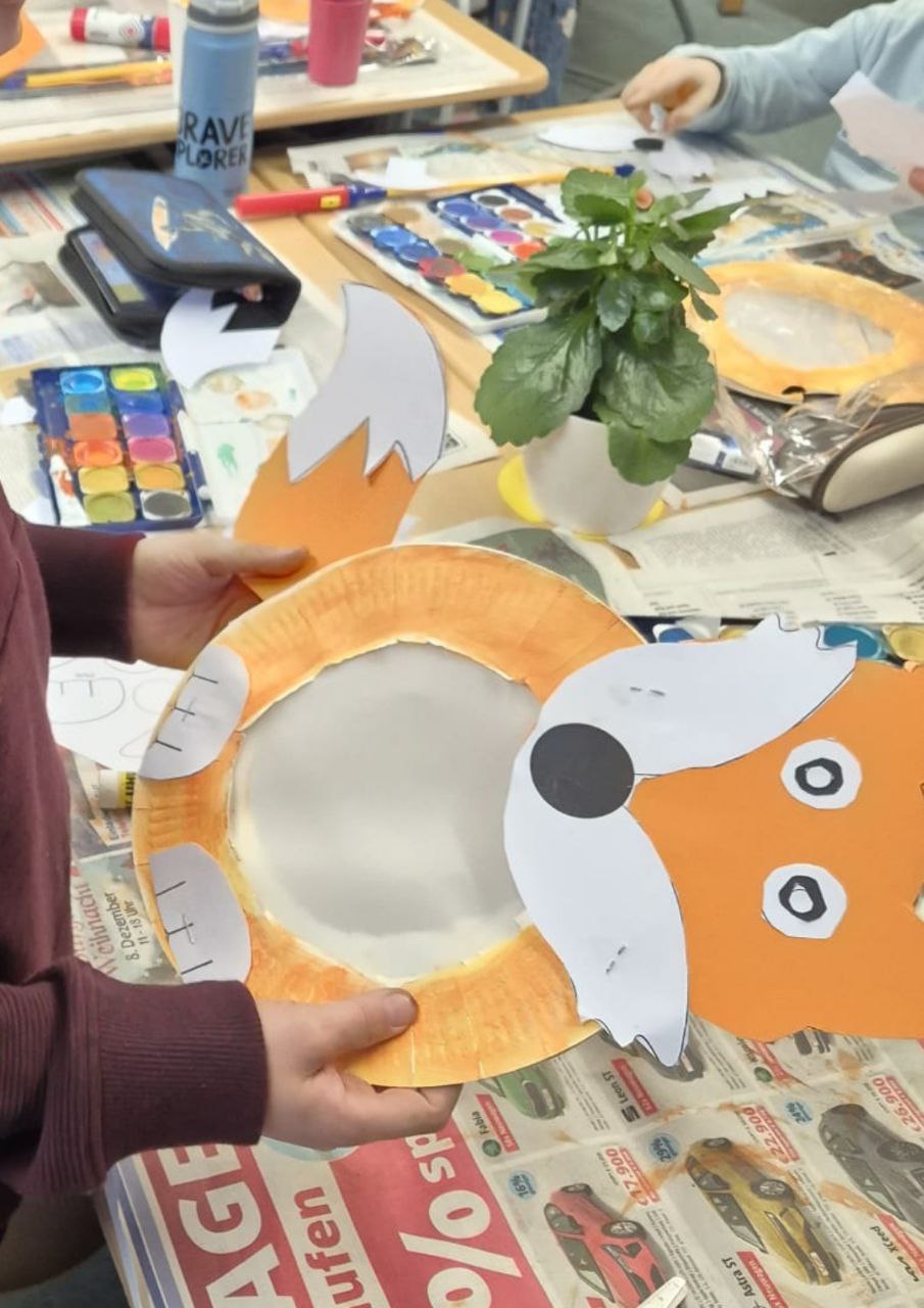 Wir haben gemeinsam Fuchslaternen gebastelt. Naja... sie sahen eigentlich aus wie Hunde 🙂
