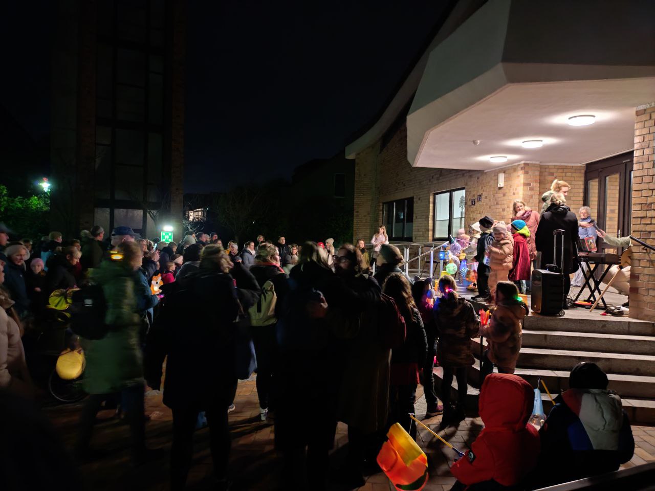 Als alle fertig waren, sind wir alle zur St. Lukas Kirche gegangen. Da haben Kinder das Lied "Lichterkinder" vorgesungen und ein Stück gespielt.