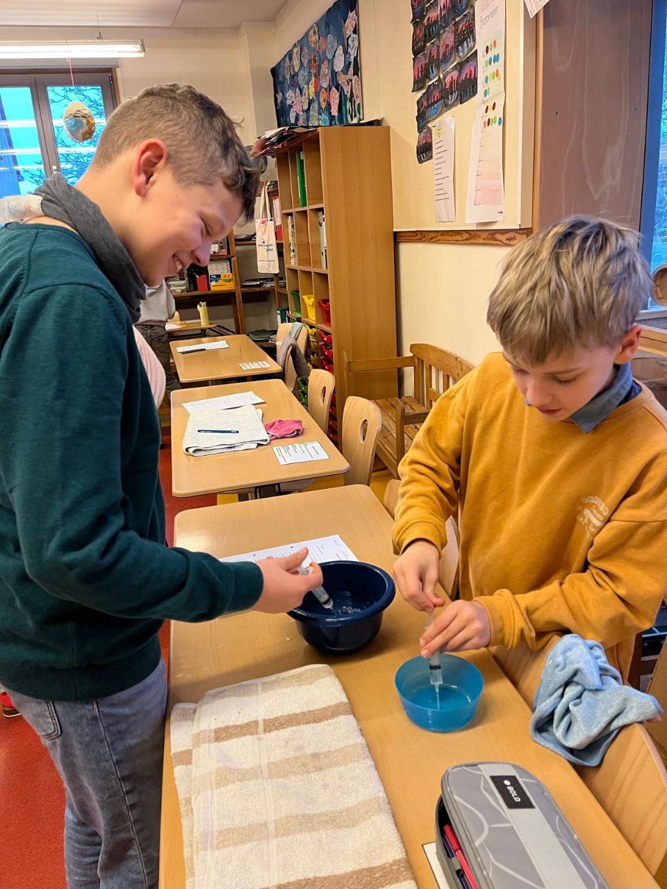 Hier einige Eindrücke aus der Volumengruppe. Zitat Viertklässler:" Wir haben echt g*** Cocktails gemixt.